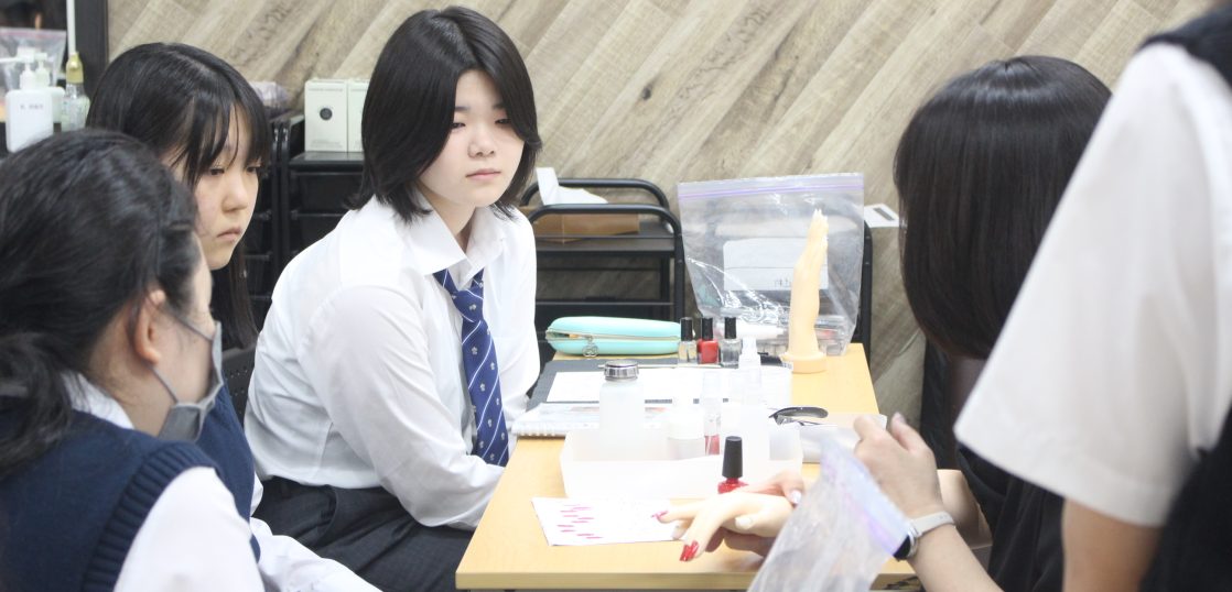 1年生の美容コースはネイルのカラーリングに初めて挑戦しました。