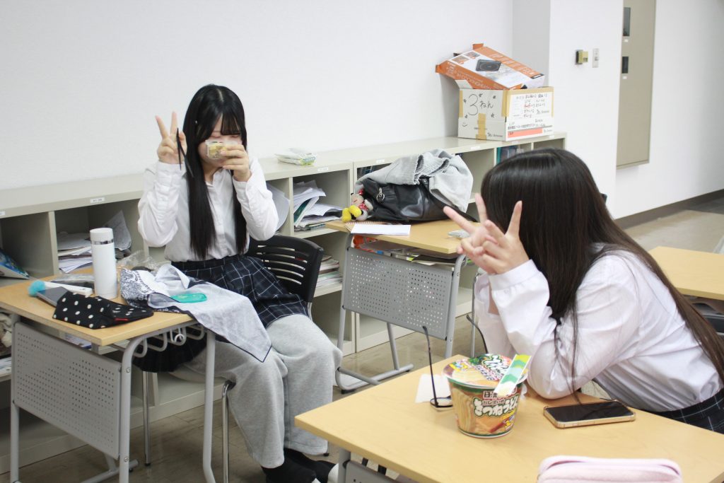 そしてやっと昼休みの時間。友達と楽しくおしゃべりをします。