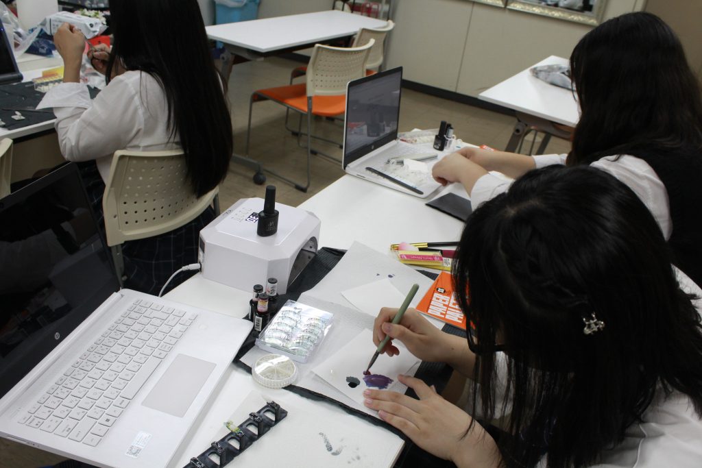 大好きな美容の授業です。今日はネイルチップ製作をしました。