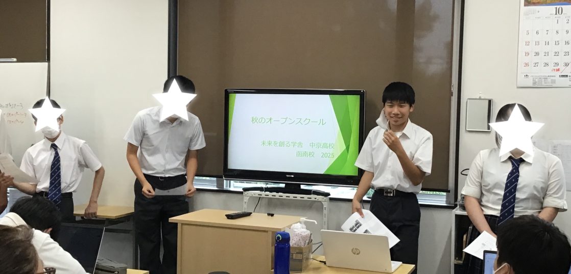 オープンスクールでは、在校生が学校生活のご紹介をしたり 質問に在校生が答える時間もあります