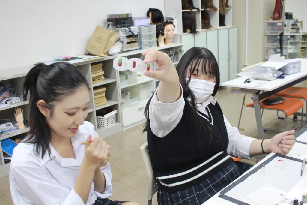 3年生は立体のネイルを作っています。キャラクターや模様を描き、完成度の高い作品を作っていました。