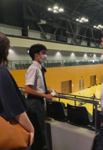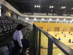 普段の体育をやっている体育館より広いですし、アリーナがある体育館だったので