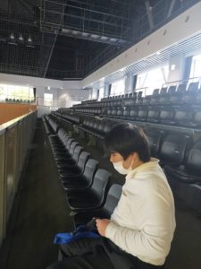 出入り口やトイレ、観覧席の確認をして当日のイメージをしていきます