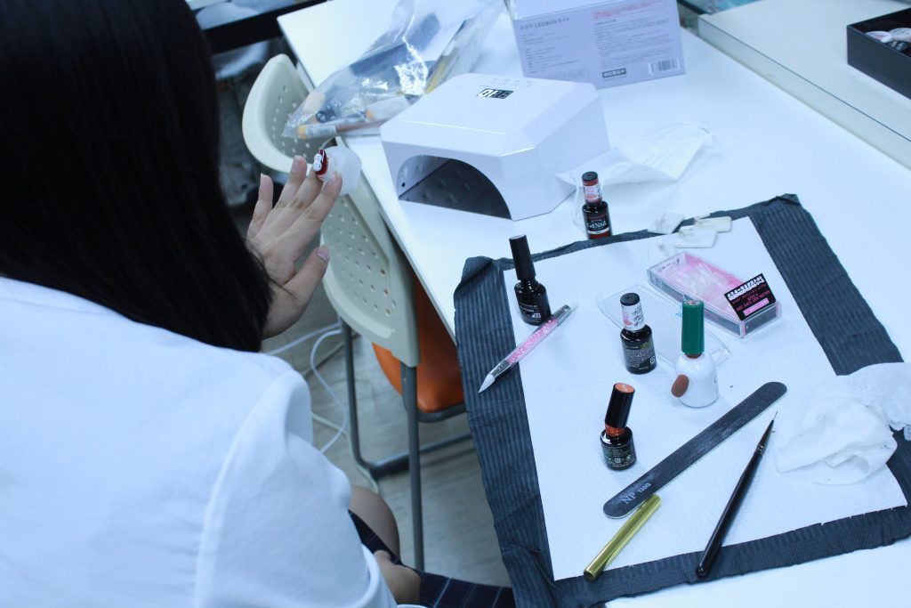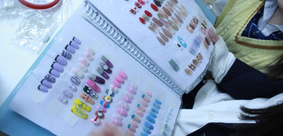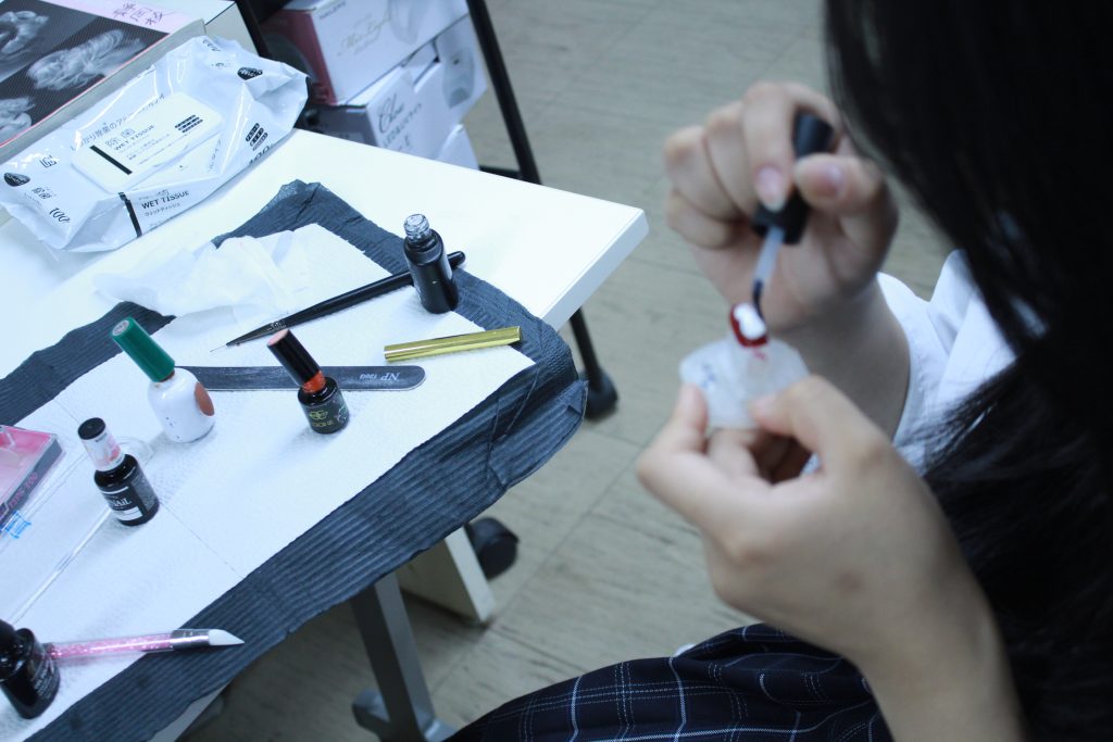 1、2時間目連続でのネイルの授業。休み時間も一生懸命製作をしています。