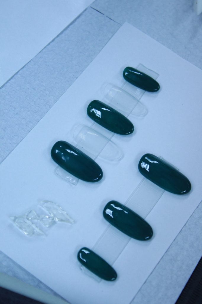 約1か月後にはクリスマス、ということでネイルの授業ではクリスマスネイルを作成しました。